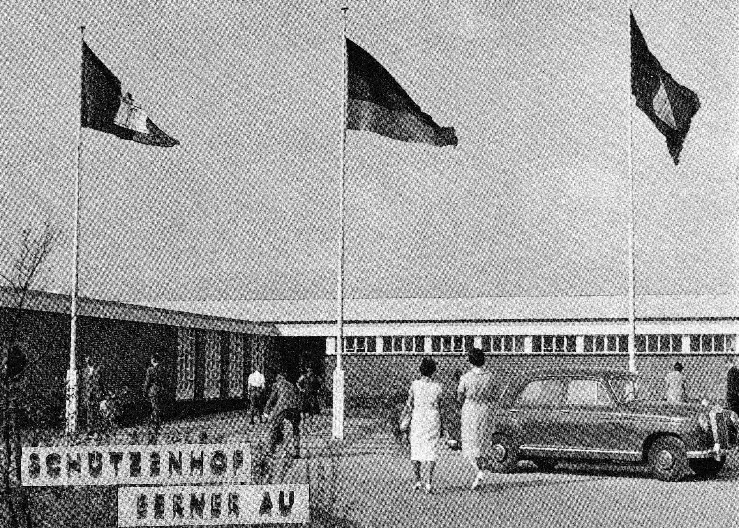Nach Standorten in Barmbek und Bramfeld konnten die Kegler und Schützen am 10. Juni 1964 ihren neuen Schützenhof am Meiendorfer Mühlenweg zwischen Volksdorf und Sasel beziehen. Neben fünf voll- automatischen Doppelkegelbahnen schaffen über 50 Schießstände - 18 für Kleinkalibergewehre auf 50 m, vier auf 100 m, 2 vollautomatische für Pistolen, 24 für Luftgewehre und -pistolen, 1 Stand für die Laufende Scheibe 50 m und ein Stand für 100 m Jagdgewehre - ideale Voraussetzungen für internationale Wettbewerbe! So entstand eine der modernsten Schießsport- anlagen Europas, und es verwundert nicht, dass der Architekt, Wolfgang Kleibömer, auch den Qlympia-Schießstand in München baute.